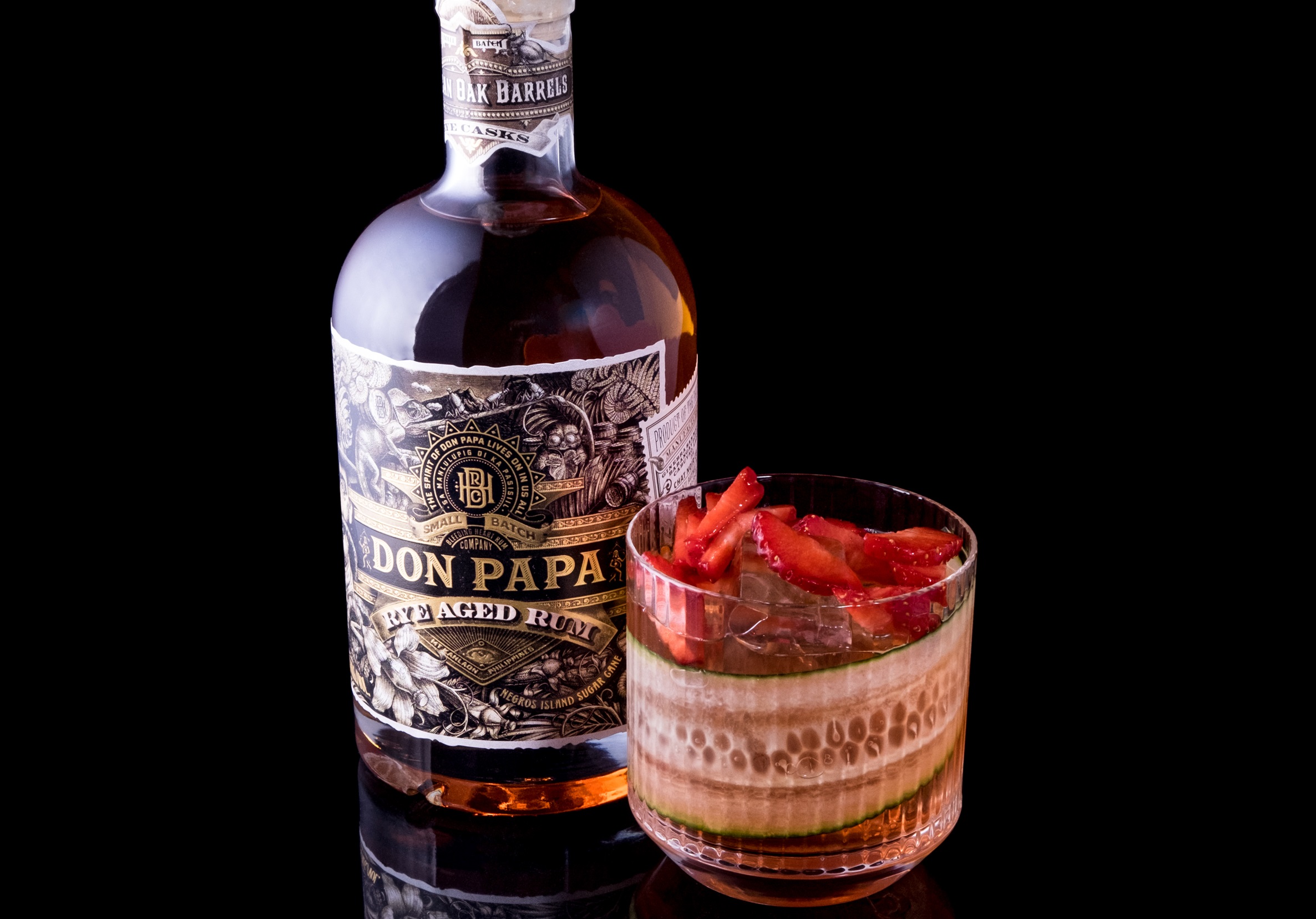 In questo drink, il rum utilizzato è il Don Papa Rye Aged, invecchiato in botti di whisky di segale. La fragola con la punta di sale regala una spiccata salinità, conservando tuttavia i sentori naturali del frutto, mentre la soda al cetriolo innesta freschezza e frizzantezza al drink, in un match perfetto con il rum, completandolo. La spirale di cetriolo usata come guarnizione richiamando degli ingredienti, dona un contrasto cromatico che mette allegria.