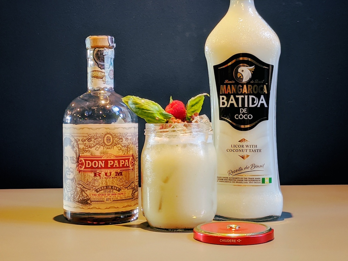 Il drink Coco è un twist del classico Piña Colada che ne estremizza la freschezza con l’intento di aggiungere note fresche e renderlo più beverino. Da qui l’uso del basilico con il suo profumo e freschezza che, unito alla Batida de Côco Mangaroca, all’ananas e al sapore tondo e inconfondibile del Rum Dom Papa, esalta il suo aroma. Il lime bilancia quindi le note zuccherine della frutta e il pepe rosa crea il contrasto finale, prolungando sapore e piacere.