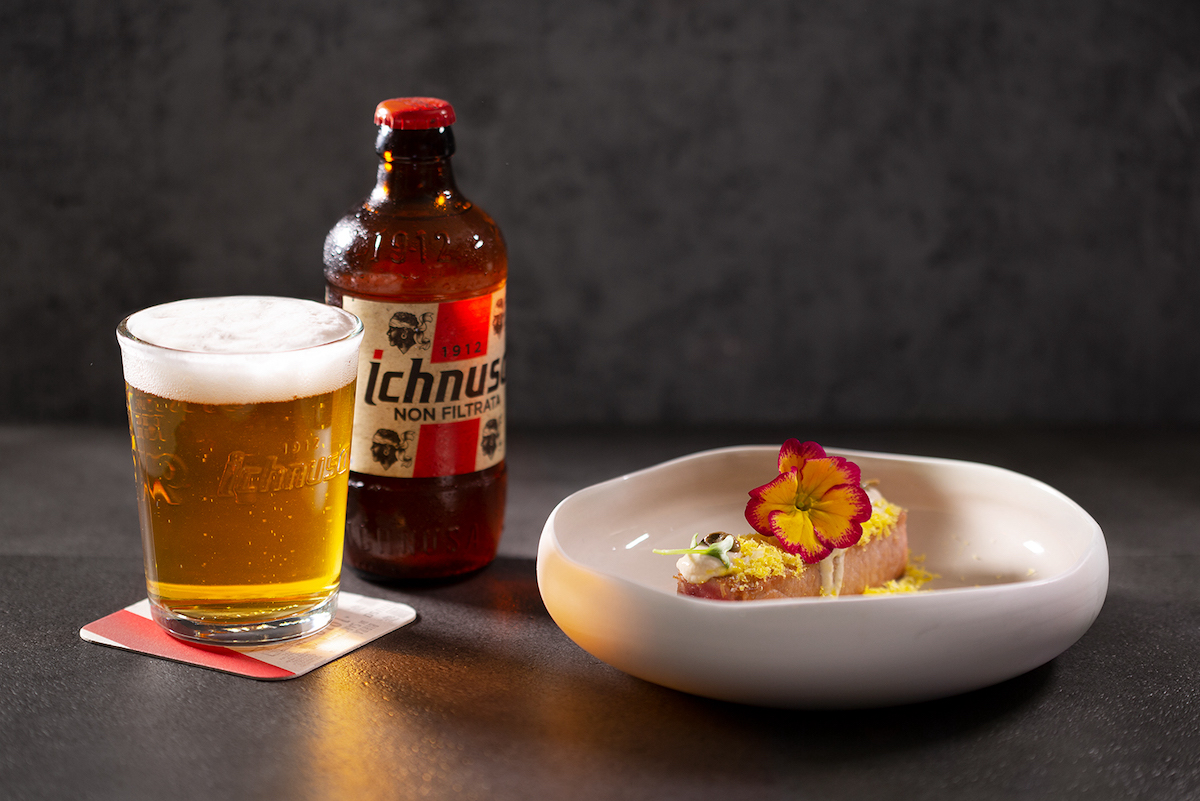 Birra Ichnusa non filtrata e tonno scottato