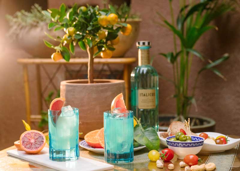 - Ingredienti: 1 parte di Italicus Rosolio di Bergamotto, 2 parti di soda al pompelmo e 3 olive verdi o una fettina di pompelmo rosa.