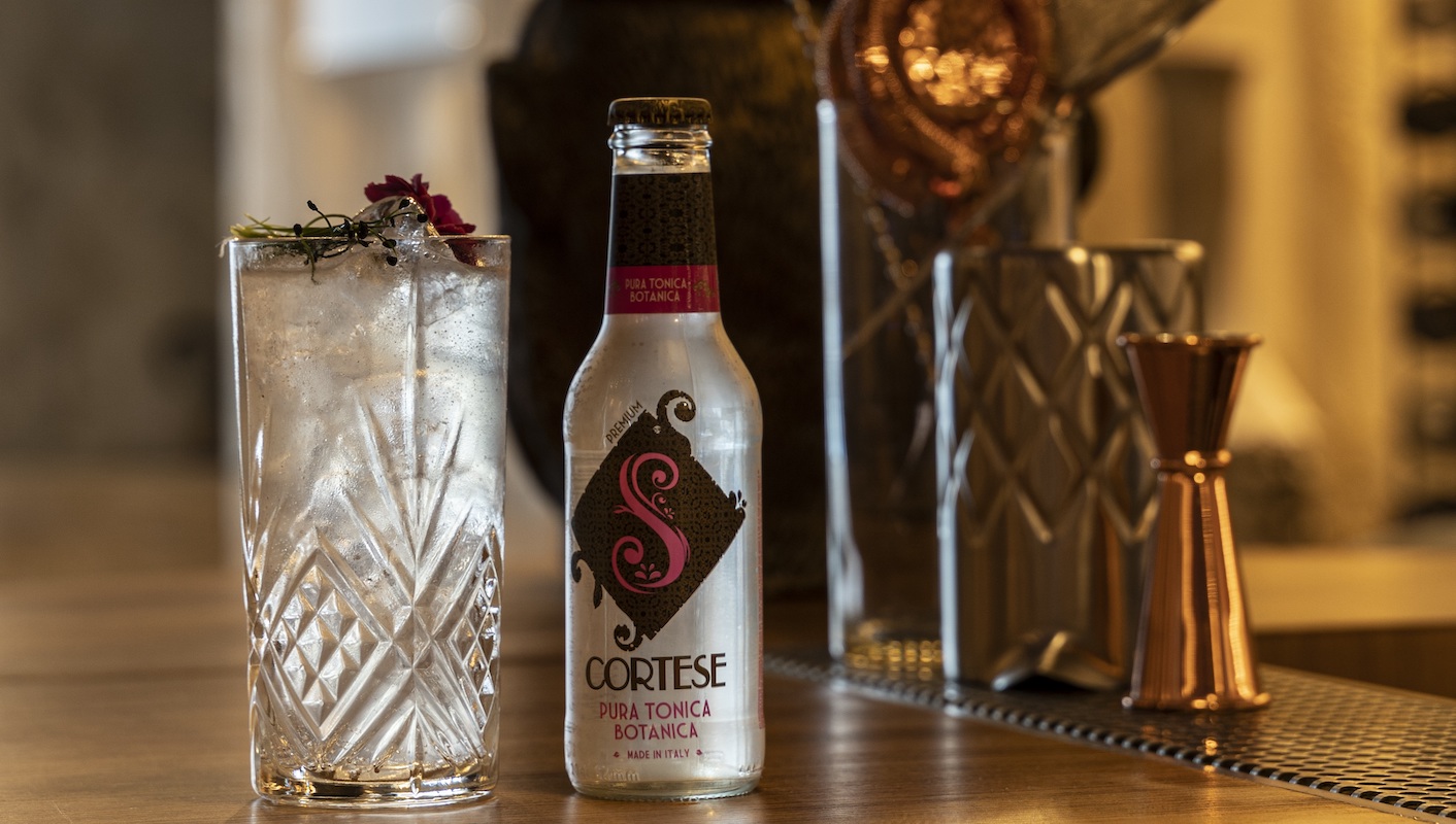 - Versare tutti gli ingredienti, tranne la Scortese Pura Tonica Botanica, in uno shaker, quindi shakerare energicamente e filtrare in un bicchiere tumbler alto.