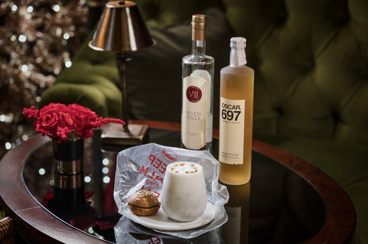 Il drink è un Negroni completo realizzato con due eccellenze italiane: il VII Hills Italian Dry Gin, con botaniche romane e il vermouth bianco OSCAR.697. Il tutto con un affondo di spumante brut che rende armoniosi gli equilibri, con un’idea del panino al Lampredotto con una salsa verde di prezzemolo acidificato con acido citrico e una salsa piccante realizzata con uno sciroppo di peperoncino, con un finale di sale e pepe dato dalla soluzione salina e uno spray al pepe, bagnando il panino con un cl di brodo di lampredotto.