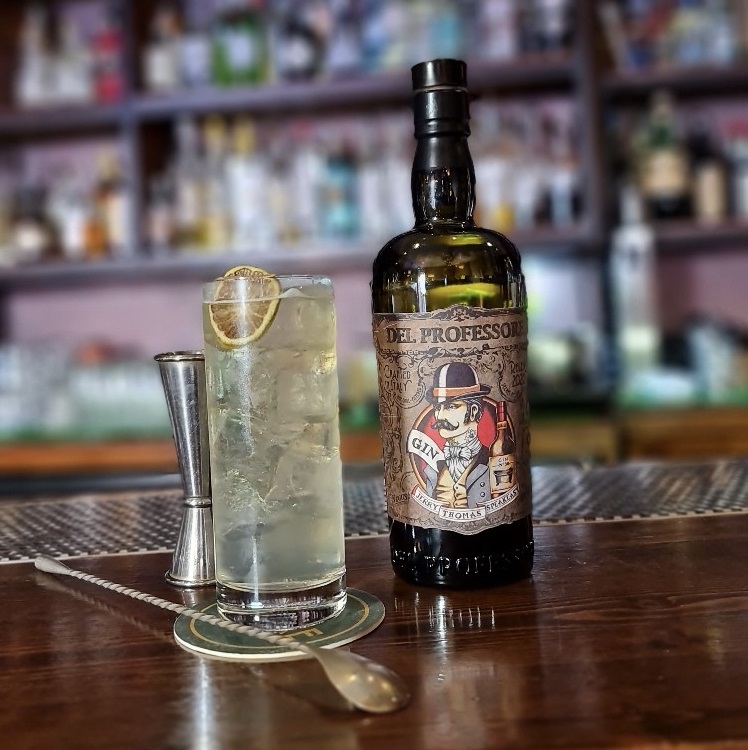 Ma il drink si caratterizza soprattutto per il gusto e il sapore del Gin Del Professore Monsieur, che simboleggia il personaggio di Mandrake, che sembra così deciso a seguire i consigli della compagna e da signore giocare la tris, pur sapendo di quali cavalli si parlava. Il Gin Del Professore è prodotto dalla distilleria Quaglia su ricetta dei ‘ragazzi’ del The Jerry Thomas Speakeasy, con il metodo della ‘della vasca da bagno’. Un metodo risalente all’epoca del Proibizionismo, in cui era sufficiente un recipiente, anche una vasca da bagno, per miscelare in infusione a freddo l’alcol e le varie erbe, spezie e bucce di agrumi, in modo da far assorbire tutti profumi, i colori e le proprietà delle botaniche. La produzione è totalmente artigianale ed è quindi a tiratura limitata. Come riferisce il nome, è un prodotto maschile, incentrato fortemente sulla nota del ginepro, sia al naso, con un profilo speziato scuro di pepe nero e note balsamiche, sia all’assaggio, con un gusto secco, deciso e importante, per i veri amanti del genere.